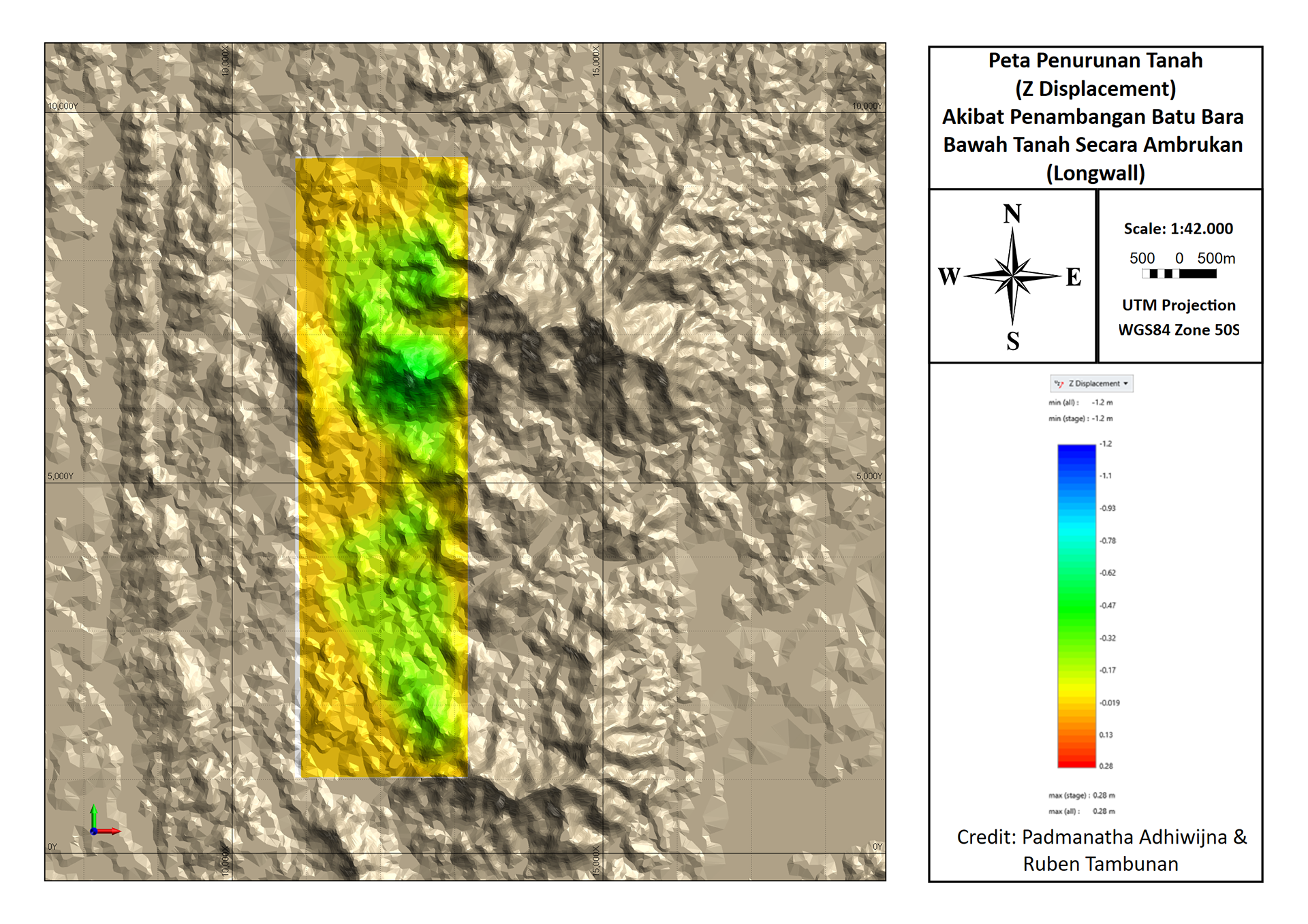 I conducted a subsidence analysis to evaluate the potential surface deformation resulting from underground coal mining activities. Subsidence is a critical aspect that must be carefully assessed to prevent impacts on surface infrastructure, the environment, and overall operational safety.